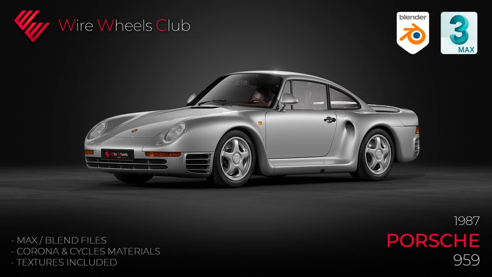This is the advanced version of the Wire Wheels Club' Porsche 959 3D model. The pack contains:
